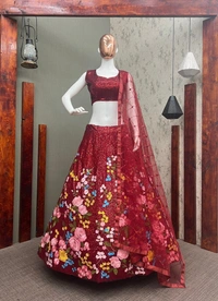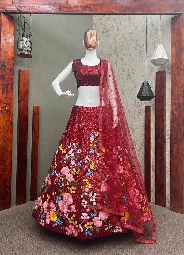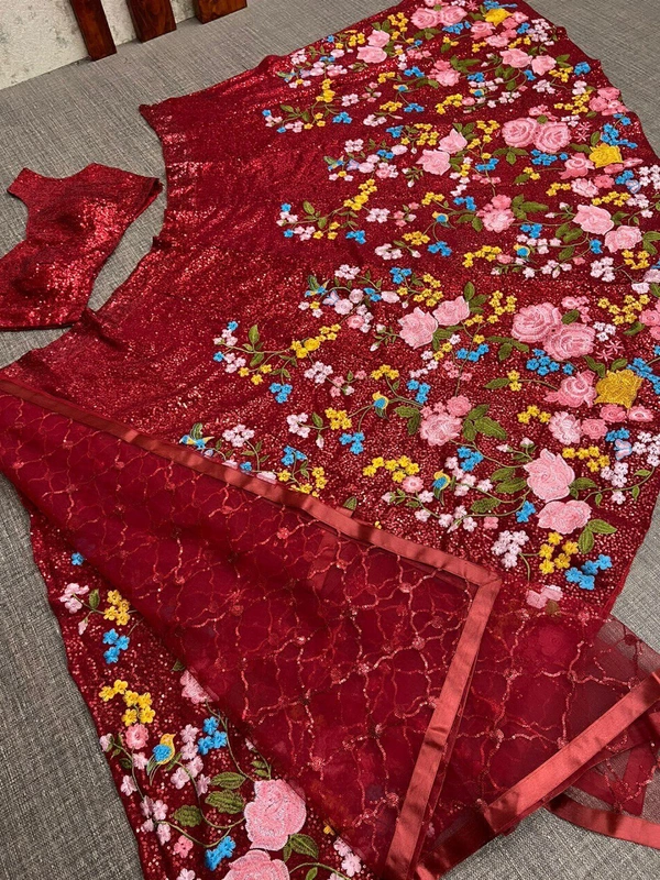 BEUTIQUE STYLES PERFECT MAROON BRIDAL GEORGETTE SEQUANCE WORK LEHENGA CHOLI WITH DUPATTA