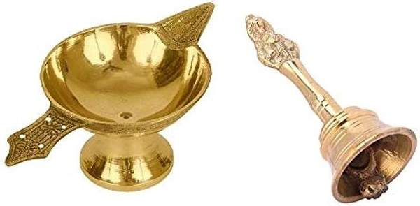 Combo Of Nagpari Head Pooja Puja Bell Ghanti With Akhand Laxmi Deepak Pital Diya Brass (Multicolor)