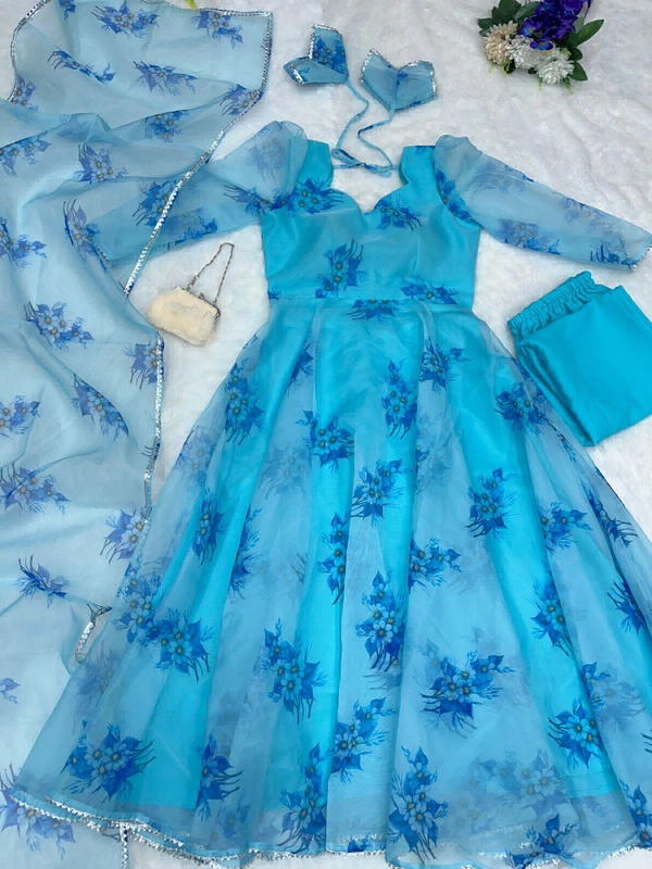 * Anarkali * - Digital printed organza silk Anarkali suit with huge flair 🌸