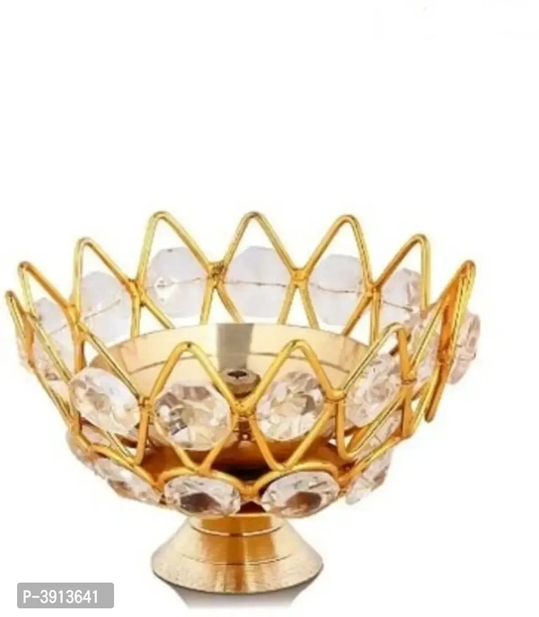 Heaven Decor Small Brass and crystal Akhand diya Bowl style Brass Table Diya (Height: 1.9 inch)