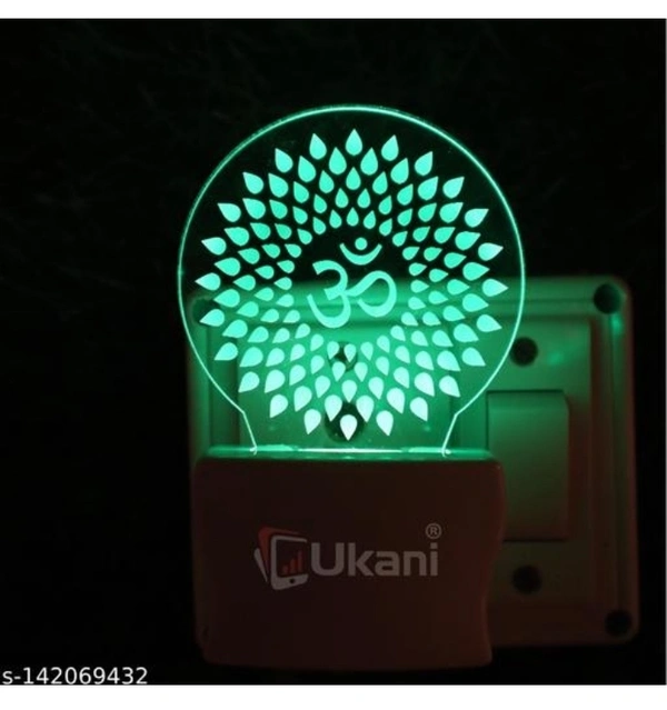Name: KATAK OM Acrylic 3D Optical Illusion Night Lamp, RGB 7 Colors Auto Colour Changing LED Plug and Play Night Light, Office Day Light, For Home and Office Use, Best for Gift, Multicolour - 7CM+3.5CM