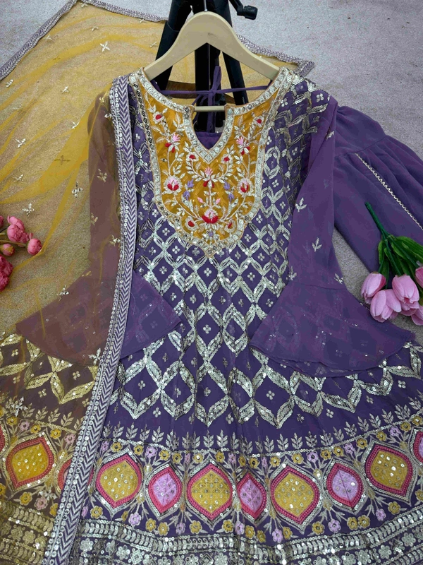 *Top Fabric * :Faux Georgette With *Heavy Embroidery 5mm Sequence Work With Fancy Sleeve*