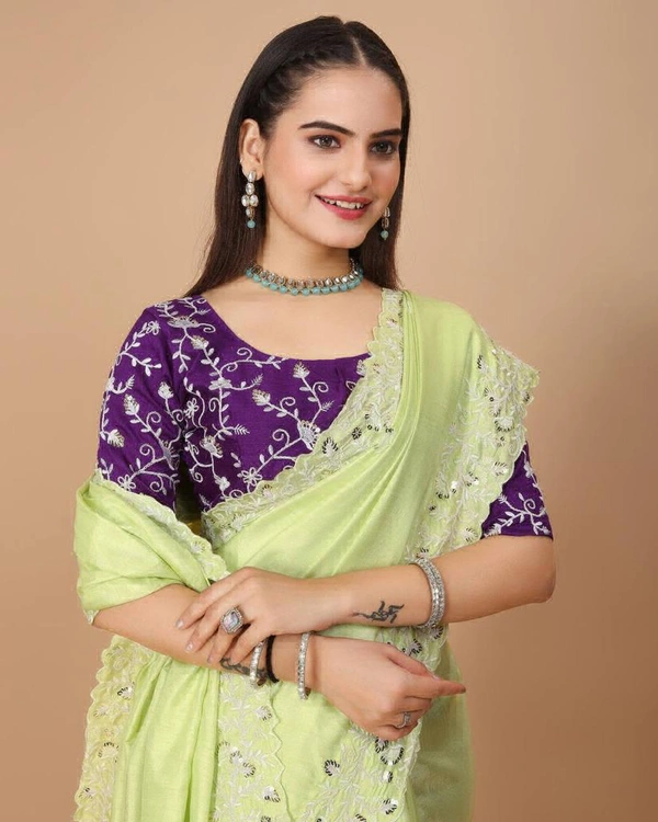 Looking some one for this same colour beautiful Saree for wedding on premium *Soft Dolla Silk* fabric with C-pallu All Over White Codding & Multi Embroidery Work Butti & Cutwork Border and Heavy Embroidery Work blouse Peice.