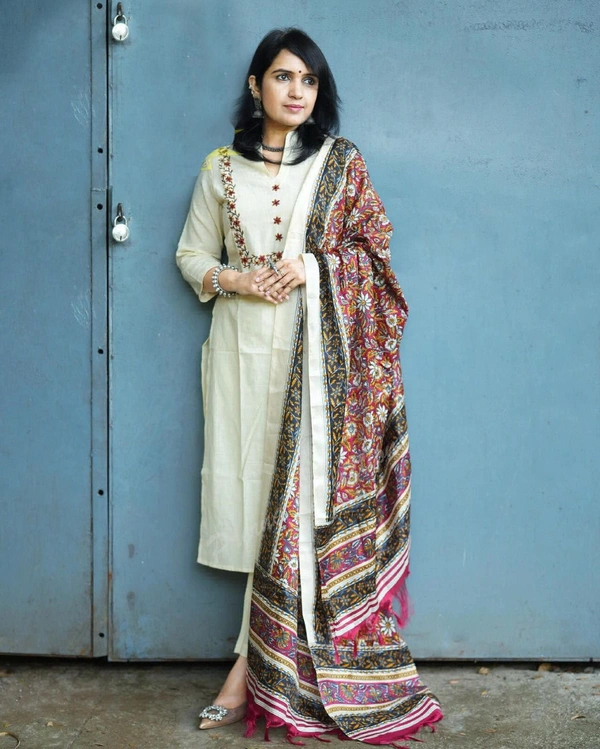 *Premium south silk kurti having embroidery on neck with pant paired up with beautiful printed Dupatta with zalar..*ππ