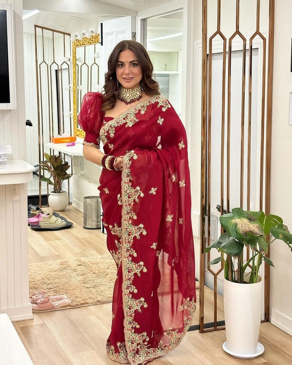 *👗Fabric Heavy Georgette Multi Thread Embroidery Sequence Saree*