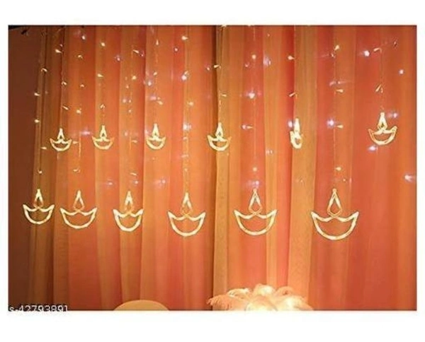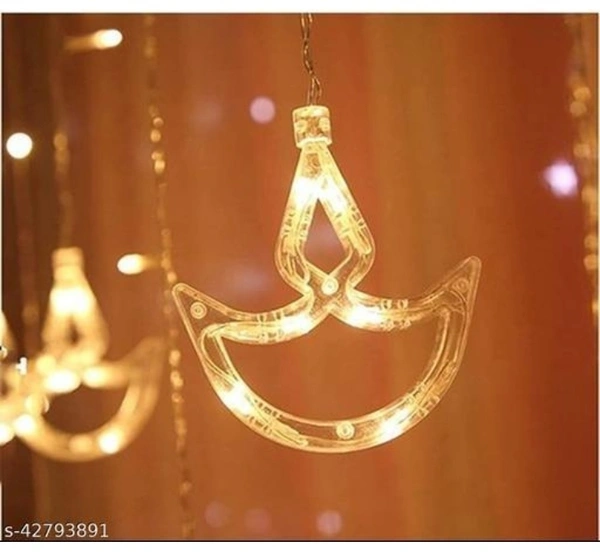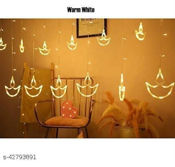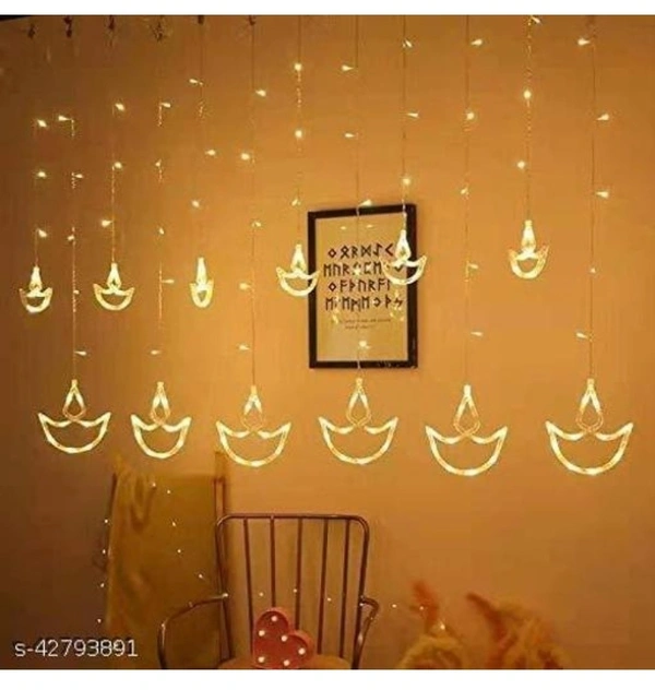 Name: Trending Trunks Warm White Diya/Diwali Curtain, String Lights with 12 Hanging Diyas and 138 LED light with 8 Flashing Modes, Decoration Lighting (pack of 1)